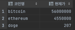 컬럼의 coinName이나 price는 간단한 영어지만 필자는 영어 울렁증이 있다.